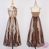 ロリータワンピース, ロング丈, ボレロ, クラシカル, プリンセス, バタフライ刺繍, シフォン, 段々フリル, モカ, 撮影会, お茶会, テーマパーク