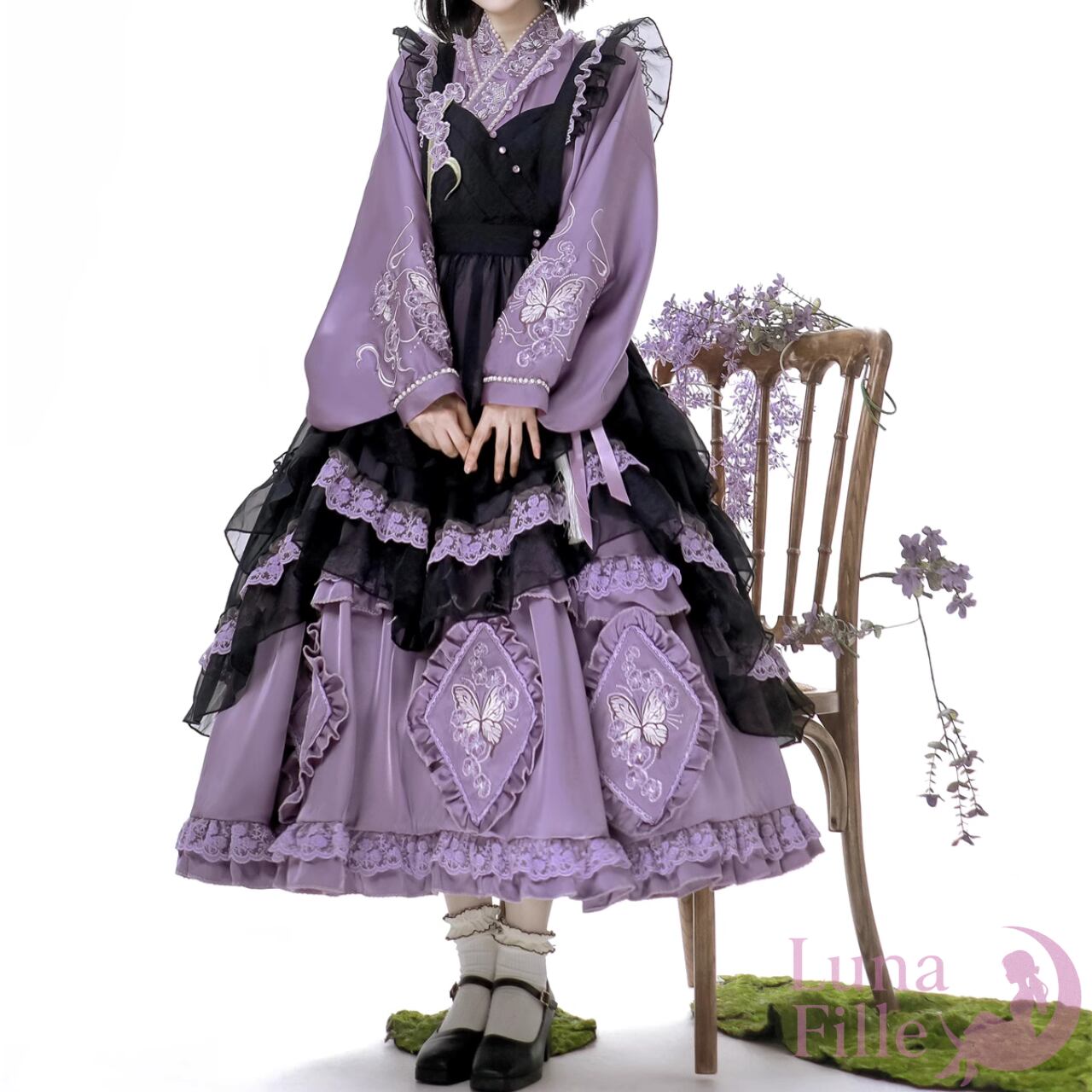 Luna Filleが贈る「紫蝶の夢」ドレスは、チャイナテイストとクラシカルロリータの融合による、優雅で神秘的な一着です。